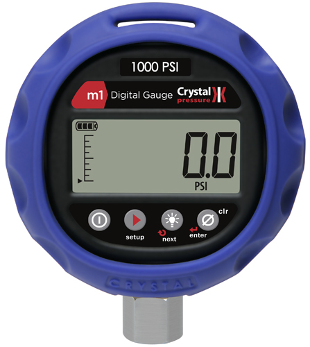Affordably Accurate! The m1 digital pressure gauge maintains 0.2% of reading accuracy from -10 to 50°C. Accuracy is not affected by dropping, over-pressure, vibration, temperature, or rapid pressure change. Available as a 30 psi digital manometer. One wide range m1 digital pressure gauge replaces up to five 0.25% mechanical gauges with 0.2% of reading accuracy. • 2-Year recommended calibration interval • Battery life up to 3 years continuous use • Bright backlit display • Easy to read extra-large numbers • Protective boot included • Shifts everyday wear to a replaceable CPF adapter
