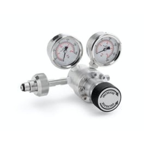 Piston sensed pressure reducing regulator for use in providing a stable pressure to precision pressure control devices.